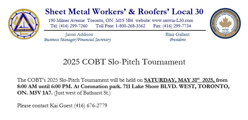 - November 12, 2025Sheet Metal Workers – Local Union 30 – Annual Sheet Metal Pension & Benefit Meeting When: June 10, 2025. 6:30 to…
