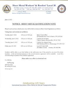 user Related postsSheet Metal Negotiations Update May 5, 2025November 12, 2025ReminderNovember 12, 2025REMINDER: February 28, 2024 Monthly Members Meeting190 Milner Ave, Toronto, M1S 5B6 @7:30November 12, 2025 Leave the first comment (Cancel Reply)Name * Email * Website Save my name, email, and website in this browser for the next time I comment. Comment * Previous postCovid cases reported to the Central Ontario Building TradesNext postSteward’s Training